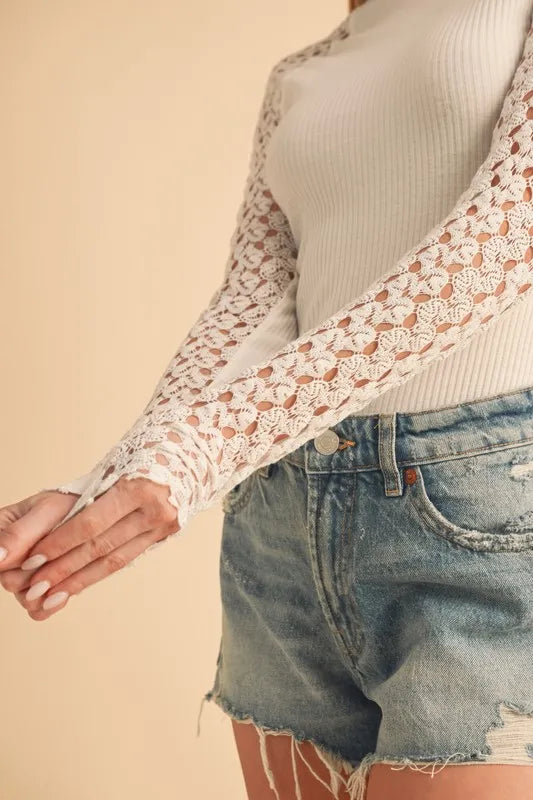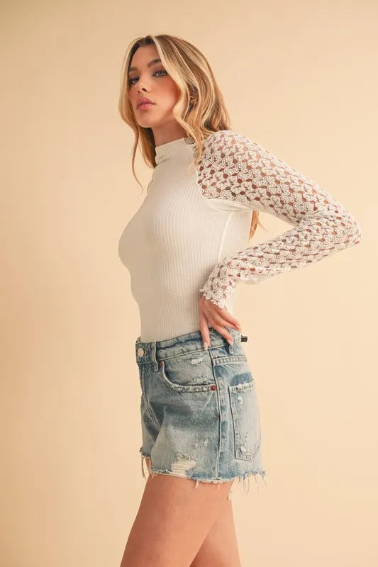 - Features: Ribbed, Lace Detail